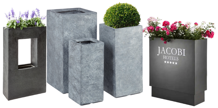 Outdoor planters impress with their extensive range of features. They offer an integrated watering system, which makes caring for the plants much easier. In addition, the planters and containers are weather-resistant, robust and available in many designs. A removable insert allows planters to be changed quickly and cleanly.